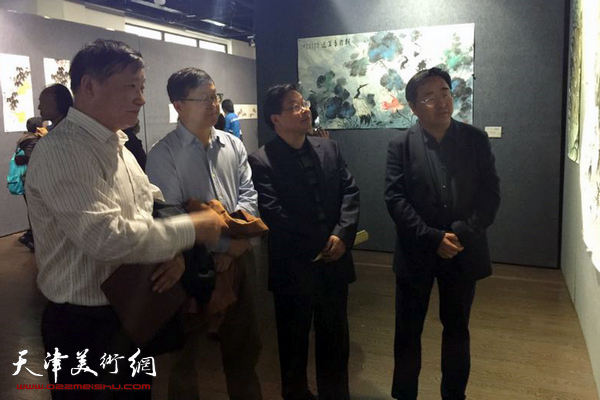 皮志刚、杜钧、张来有、李宝志、缪文杰在画展现场。