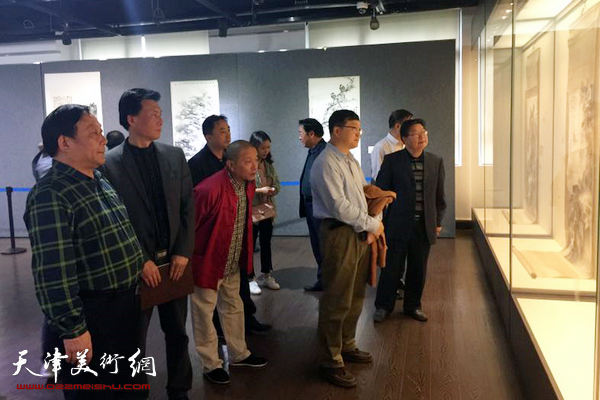 戴照林、皮志刚、孙占元陪同嘉宾参观画展。