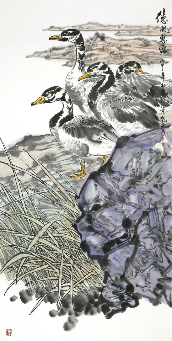 他们的中国画创作关注传统美学思想的渗融,在文化感知上表现出对现实生活诗意性超越,在艺术语言上表现出对于中国写意精神的继承与发扬,在中国艺术精神的感召下,扎根人民、扎根生活,在精神高度、情感温度和创新力度的多重维度中寻找灵感,从他们的作品中可以看到中国传统文化思想的传承与当代性转换。