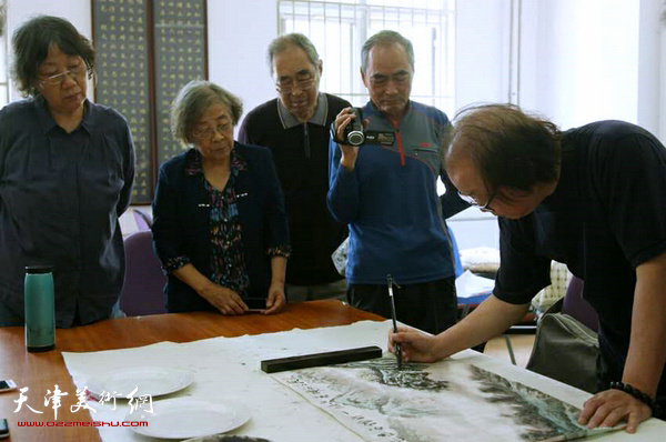 讲座后,会员们纷纷拿出各自的画作,董振涛作一一点评和现场示范。同时对于书画的章法、款识及印章的运用等等,也都做了讲解。