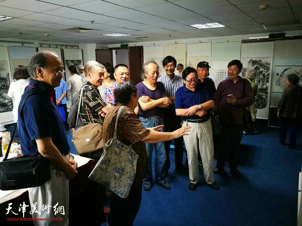 会员们在展览现场交流创作心得。