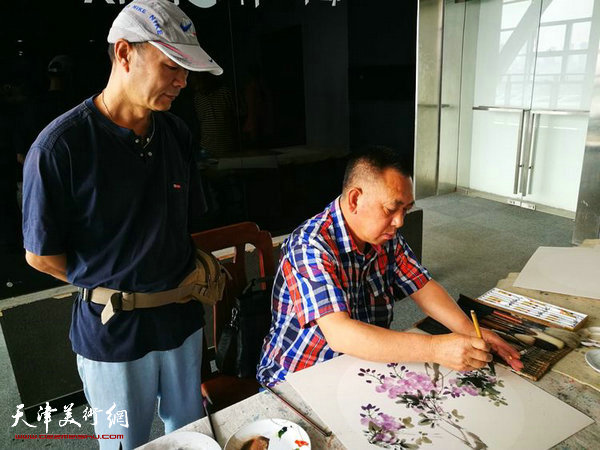 青年画家傅刚在现场示范。