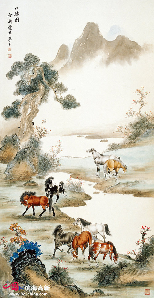 爱新觉罗·梦玉作品:《八骏图》