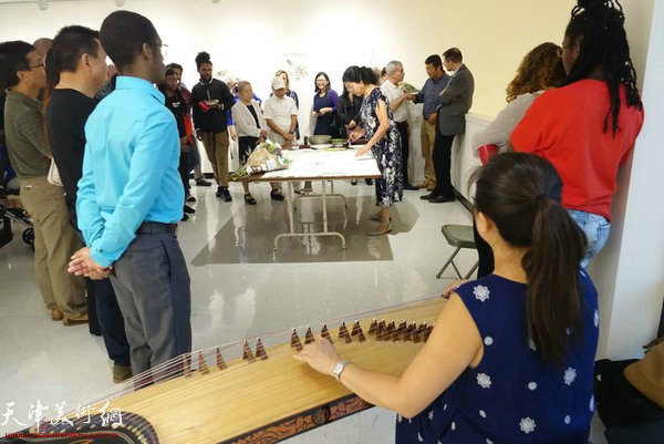 著名古筝表演艺术家邓海琼女士在展览现场古筝演奏。