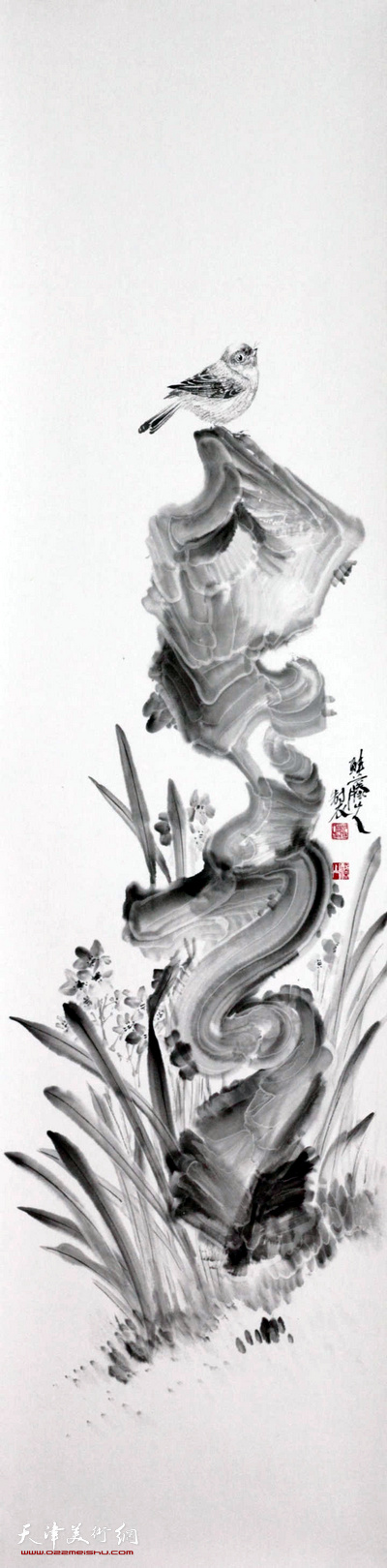 吴茀之在60年代提出“笔墨要旧,境界要新;境界旧,笔墨要新。” 在一定意义上讲,笔墨的好坏决定作品的境界。此即“笔墨至上”之谓。在某种意义上,笔墨也是水墨的核心。善用水墨者善化。郑伟善化,化旧为新,化平凡为神奇。正因为笔墨的好坏决定作品的境界,所以传统国画不太注意题材,花鸟画多局限在梅兰竹菊荷等有限的题材上。题材的重复造成作品的酸腐气。郑伟无疑是一个痴迷于笔墨的人,这使他不但有对抽象的敏感,也对传统非常迷恋。他的笔墨是旧的,题材是新的,各种山花野草他都感兴趣,它们“发芽时、开花时、枯萎时及它们在风里、雨里、雪里、雾里的千姿百态,诸如此类”,他都关注。如此,其传统型作品境界也是新的。他通过扩大题材,使笔墨获得新的生命力。看他最近的传统花鸟,我又一次受到触动。