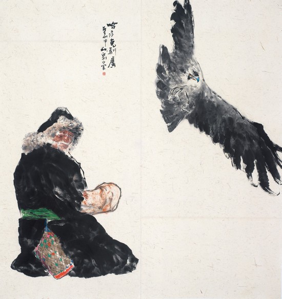 刘亚军 《哈萨克驯鹰》 203×192cm