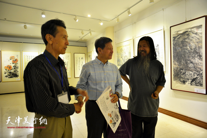 陈冬至、丁世儒、李文安、赵玉森等在画展现场。