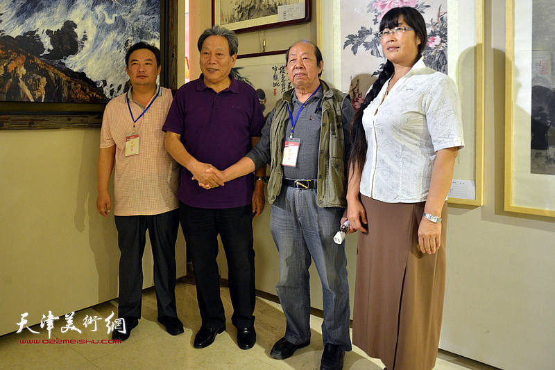 曹秀荣、霍然、赵俊山、杜润国在画展现场。