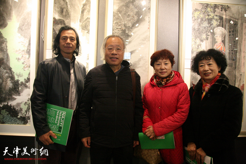 左起:李爱民、王金厚、张冬梅、张吉侗在画展现场。