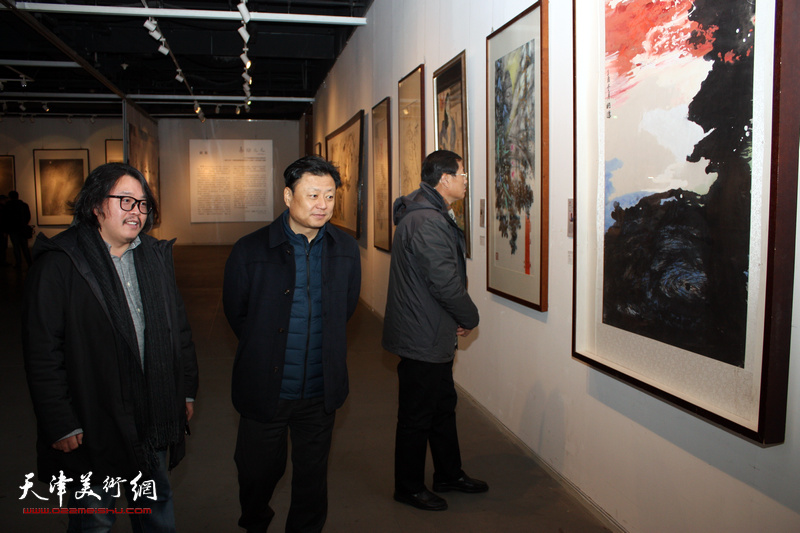 霍春阳、杨岚、李军等在画展开幕仪式现场。