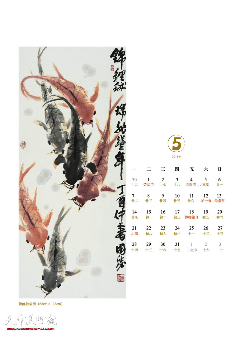 著名画家刘国胜笔下的鱼-2018戊戌台历 五月