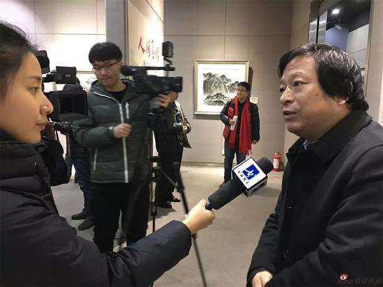 中国美术馆馆长吴为山因公务繁忙不能前来现场,他特意录制了一段视频表示祝贺。他说佘玉奇心中有两个山水,一个是大自然山水,师造化;一个是心中的山水,遍摩中国历代名家山水,师古人。他的山水可望、可攀、可居、可思,描绘的是祖国的青山绿水和大好河山。