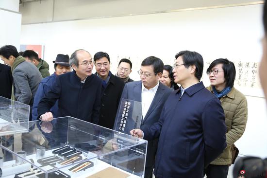 出席开幕式的领导有:南京市政府副秘书长吴秀亮;南京市宣传部副部长、市文联党组书记、常务副主席陈炜;南京市文广新局党委书记、局长刁仁昌;江苏省国画院院长、江苏省美术家协会主席周京新;南京艺术学院副院长谢建明;江苏大剧院董事长叶颷荣;江苏省文联副主席、省民间文艺家协会主席陈国欢,参加开幕式的领导与艺术家还有南京书画院名誉院长、南京市政协书画院院长朱道平;江苏省美协副主席陈新建;原南京市文广新局副局长、巡视员徐开利;江苏省书画院常务副院长高建胜;江苏省现代美术馆执行馆长包信源;江苏省文化厅艺术处副处长李慧;南京市文联副主席、南京市美协执行主席濮存周;江苏省国画院院长助理崔见;江苏省美协花鸟画艺委会副主任赵治平;江苏省花鸟画艺委会秘书长韩非;江苏省政协书画院副秘书长刘平。院馆领导及参展艺术家也出席了开幕式。