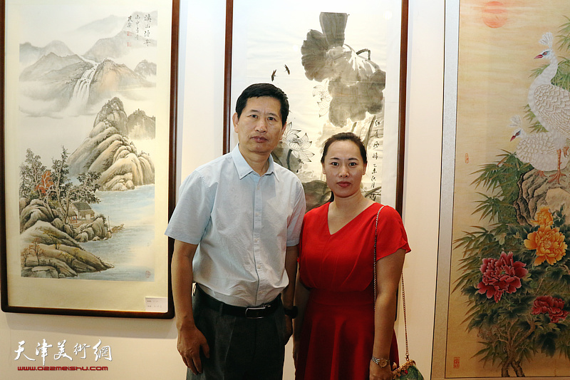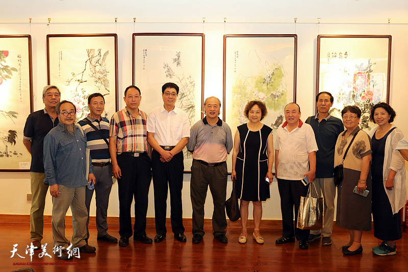 武清区画家张法东、王宏志、孙淑平、王梓瓏在画展现场。