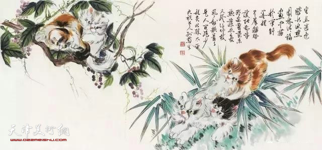 画猫的最高境界是心性化境界,也是画境与心境的互融,这使得孙菊生的画在很大程度上区别于那种纯粹的技术工匠画。艺术品格就是指人格修炼与专业修养,只有二者齐头并进,才能使精神不贫,方可为艺术的拓展铺平道路。孙菊生为追随理想而生活,勇往直前,诚实而不自欺,定能臻于至善至美的境地。