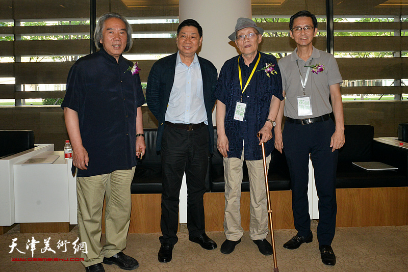 何家英、孙长康、霍春阳、张志连在画展现场。