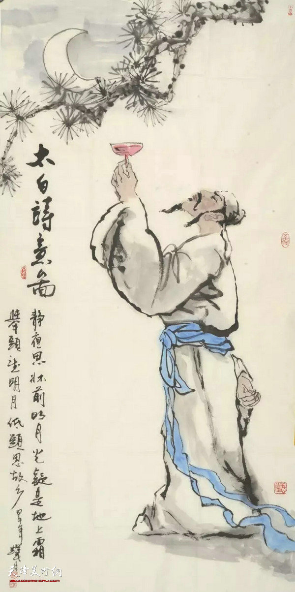 作为一个水墨写意人物画家,他似乎更心仪徐渭的潇洒狂放、石涛的清新浑成、八大的冷峻简雅、虚谷的疏朗奇肆。这些文人画大师格调的高雅清雄、画风的俊逸自然、才气的纵横驰骋、技艺的驾轻就熟,都对他的艺术风格形成起到了决定性的影响。为画好古人,他用功于古典文学,游走于传统艺典,孜孜于唐宋诗词的深邃意境,在古人创造的诗境中去寻求创作灵感的契机。