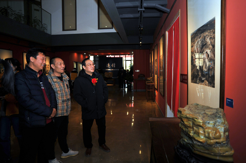 张晓彦、樊杰颖、杨海涛观赏展出的王錞先生作品。