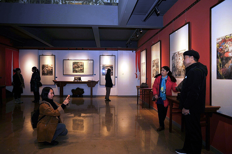 贾广健与观众在展览现场。