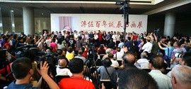 毓峋、毓岳、毓震峰、王伟毅、恒鑫等观看展出的溥佐先生瓷板画。