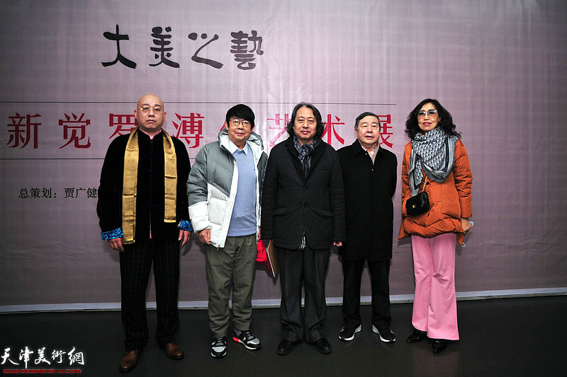 贾广健院长与溥佐先生亲属在画展现场。左起:恒鑫、毓岳、贾广健、毓峋、张超。