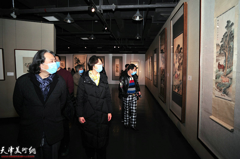 孙杰、贾广健、毓震峰观看展出的溥佐先生作品。