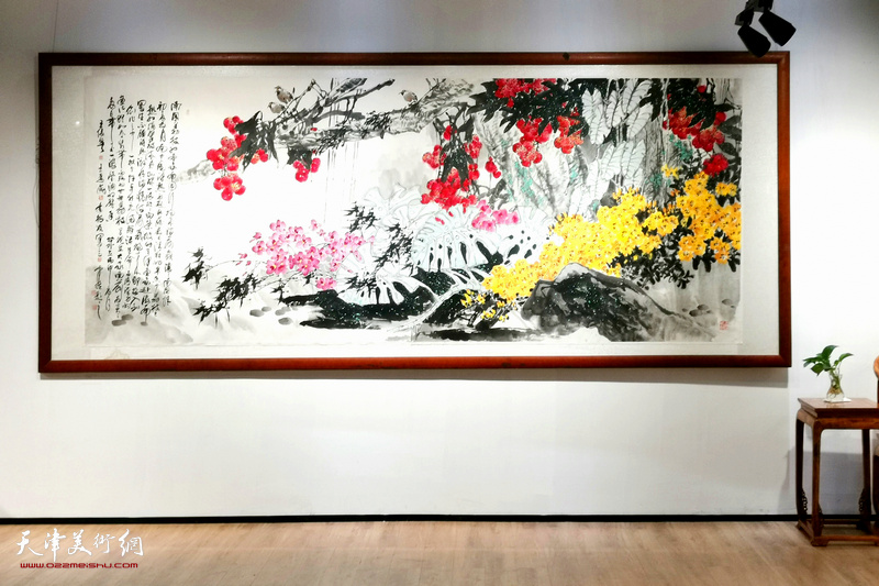 天津画家陈冬至、贺建国、霍然、王俊英、王惠民、李根友等作品亮相展出。陈冬至的大幅作品《木兰从军图》拓古开今,貌离神和,神遇而迹化,给人以强烈的感染力。贺建国的风景油画,注重情境意趣的有机结合,具有鲜明的个人风格特点。霍然的意象泼彩画首次亮相海南,他以现代人的眼光重新诠释传统、诠释自然,以创新的泼彩形式,表现空间的无限变化,画中蕴含更多的内涵和意趣,吸引观众驻足观摩,探究奥密。王俊英、王惠民、李拫友的巨幅作品《南国荔枝红》强烈渲染着海南荔枝红的盛大场景。《南国荔枝红》在展地迎门大厅正面,成为密集观看和拍照留影之地。这个展览来自天津画家的作品占比较高,受到观众广泛关注和好评。
