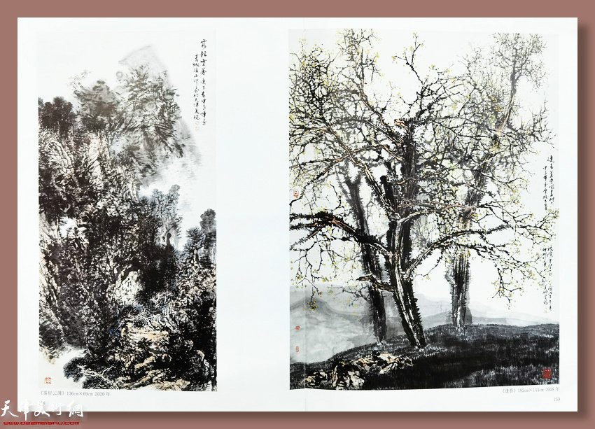 申世辉作品:《山中一夜雨 树梢百重泉》136cm×68cm 2020年