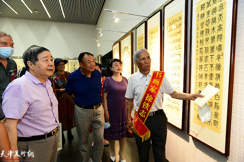 徐铁志向毓峋、李士青、徐奎等介绍展出的作品。