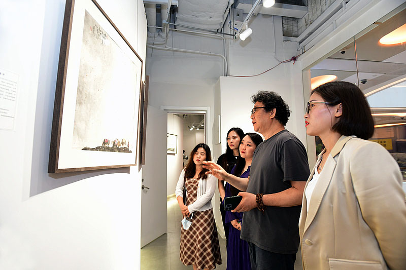白鹏老师向大家介绍展出的作品。