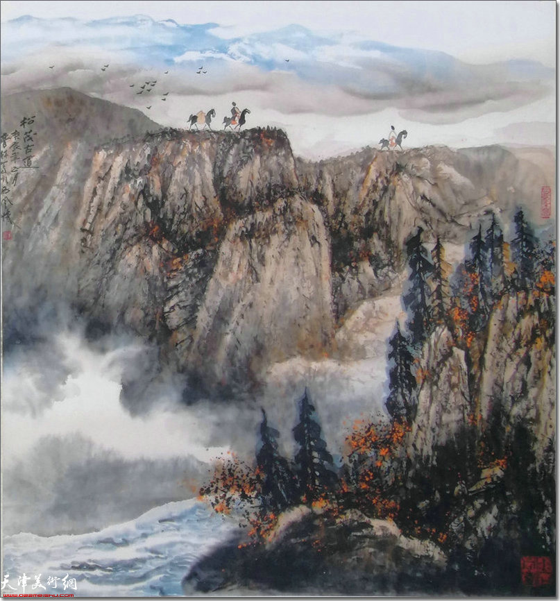父亲曾言学画要有小成,无外乎在颖悟和笃实两条路上努力。笃实之道本已不易,要虚心勤勉治学做事,而颖悟则难上加难,是在笃实的基础上过滤和升华。父亲以对绘画的酷爱而勤奋笃实;少年时画作为师长欣赏,年轻时即代师传道,严先生谓之天资颖悟。十几岁时父亲作品就被画店青睐,很早就通过售画来帮补家庭,二十岁之前,父亲已经在琉璃厂荣宝斋,宝古斋等京津画店长期出售作品。1959年父亲21岁时参加工作成为天津和平书画社画师并加入天津国画研究会。1974年父亲调入美术学校任教。1979年加入天津美术家协会。彼时山水花卉人物方面俱有佳作,尤倾力于山水画创作。多率领美校学生写生於南北各地,登峰临泽撷写山川草木,从江南风物苏杭情愫至泰岳雄壮无不涉及。