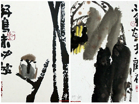 此外,他在他的一幅幅书法“语录”中更是放笔直言,妙语叠出:“一个名符其实的画家,应有旁若无人,敢做自已的胆量”。“天才的特征是孤独、自信、有主见、不从众、不跟风、走窄路的人”。刘荫祥先生正是这样一位以高妙而又独到的思想为指导,无视冷漠,不怕孤独,充满自信地坚定走在别人从未走过的“窄路”之上,义无反顾地奔向自己的理想目标,成为具有高度艺术成就的哲思大写意花鸟画家。大学者朱熹诗曰:“半亩方塘一鉴开,天光云影共徘徊。问渠哪得清如许,谓有源头活水来”。那么,刘荫祥先生汩汩流淌的艺术之泉又源于何处?我们从他用于自勉的书法“语录”中看到了答案:“读书、读画、读生活,做一个不同于任何人的自己”。在书籍的滋养、艺术的熏陶和生活的“哺育”中,他的思想高度也由此而得以升华。