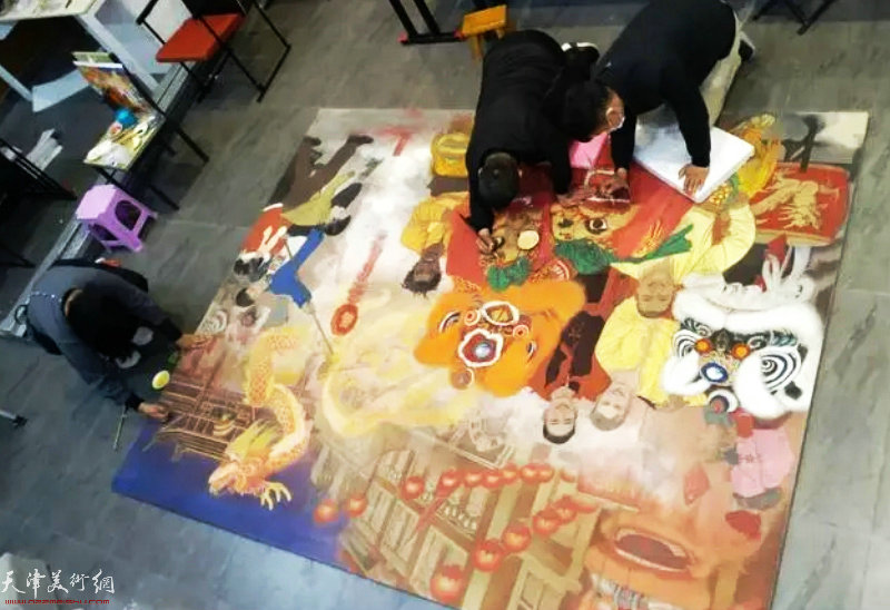 中国艺术研究院、工笔画院同仁在《欢乐春节》创作现场