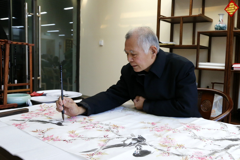 路中跃先生在鸿顺里街综合养老服务中心创作《迎春图》