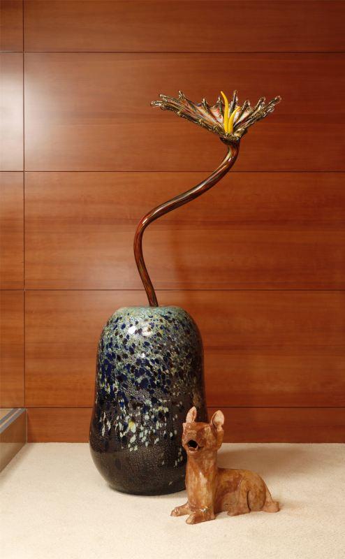“我希望尽量让艺术品与我生活在一起。”为了凸显艺术品,曹兴诚的居室装潢很简约,墙壁更是素净。他把戴尔·奇胡利创作的玻璃制品与陶狗放在一起,而日本当代艺术家千伯住的水墨瀑布则与一尊佛像相得益彰。他说,好的艺术品,无论其来自哪一种文化,摆在一起都能够融洽相处。