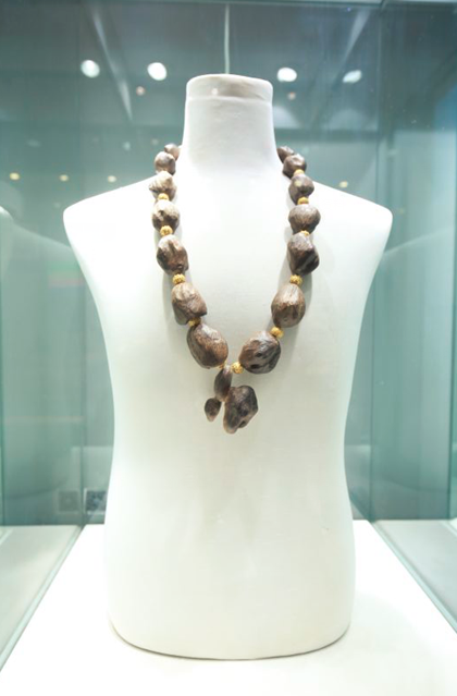 值得一提的是,此次登场亮相的50余件馆藏级沉香精品全部来自林心惠、林柏舟父子的捐赠。作为福建平潭的沉香收藏世家,多年来,林氏父子先后收藏有七大产区500个品种、共计2819件沉香,包括上千件历代香道器具。而此次甄选出的展品大体以沉香产区来划分,传承脉络有序,并且其中不乏精品。例如一件沉香莲花摆件,来自日本美术馆旧藏,其以天然造型沉香为枝和叶,清代老灵芝辅以金丝楠底座,雕工精美,意趣盎然;还有一件伽楠天然随形大项链,系中东王室旧藏,该项链以重达一斤有余的十八颗天然随形大料伽楠珠为主,配以波斯风格的手工纯金隔珠交相辉映,色泽深厚、浑然天成,极为罕见。此外,活动现场一件近百公斤的伽里曼丹正产区生结沉香大料,则更是吸引了众多爱好者的眼光,其油脂匀整、纹理精美,品相完美,“称之为‘香王’也不为过。”有业内人士如此评价道。