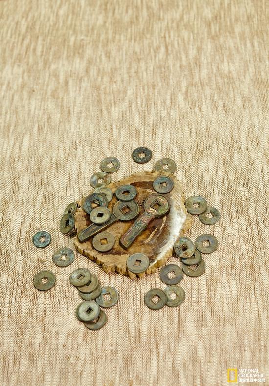老张蹲在地上,从洞口一把一把往外掏古币。一个小时过去,掏出来的钱币越堆越多。为防止哄抢,老张把古币装袋,扎严。由于古币数量巨大,价值也无从知晓,几位村民商量后,立即报警。阜寨派出所民警和兴平市文物稽查大队相关人员 迅速赶到现场。民警首先对古币进行称重,将近千斤。文物工作者初步判断,这是新莽时期的一个钱窖,币种主要有货布、货泉、和大泉五十,距今已两千年。