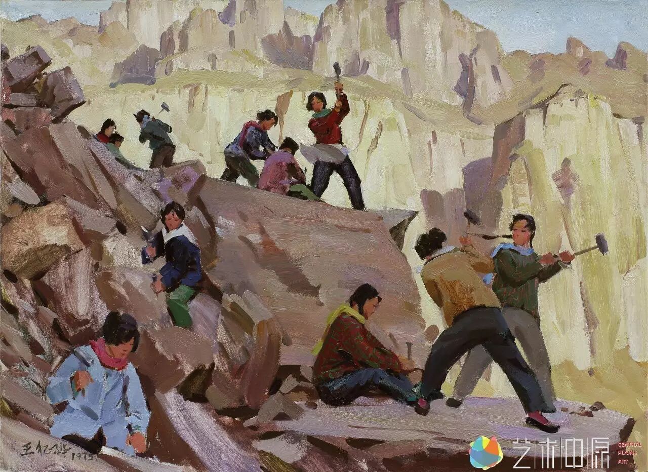 王征骅《奋战太行石姑娘队》 1975年 40X55cm