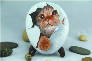 24岁的帅小伙儿邹普有一门绝技——在鹅卵石上画猫,而且画得惟妙惟肖,妙趣横生。他把作品搬到淘宝店后,众网友崇拜不已,纷纷求“抱走”、“收藏”。每只石头猫售价几百元仍供不应求。