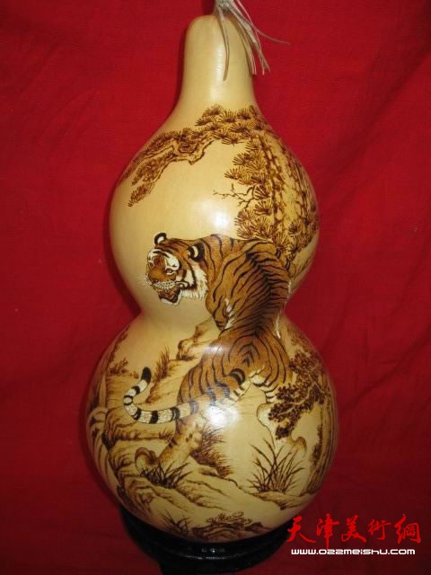 [天津美术网]:您能和大家谈谈如何选择葫芦以及烙画的制作工艺吗?