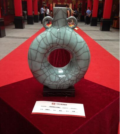 徐朝兴大师捐赠的龙泉青瓷《哥弟混合三环瓶》 李婷婷 摄