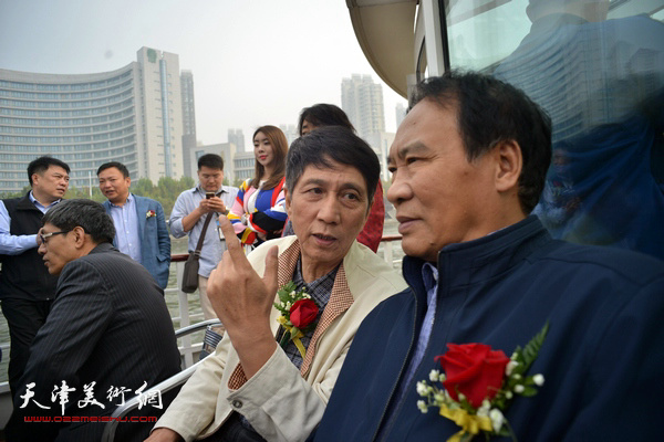 天津美术网讯 10月18日下午,由天津市政协书画艺术研究会、宜兴凯宏堂紫砂艺术交流中心、天津市颐和春天文化活动策划有限公司(醉墨雅轩)、天津津旅海河游船股份有限公司联合举办的“刀笔神韵 艺源鸣长——李梓源父子、顾跃鸣刻瓷陶艺紫砂作品全国巡展·天津站”展览启动仪式在天津海河观光一号游轮上盛大举行。