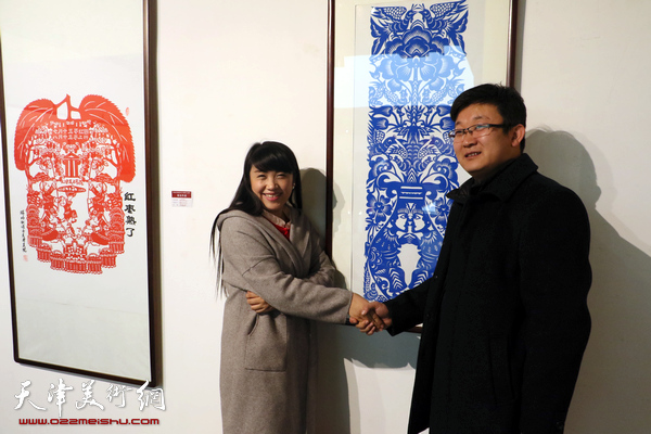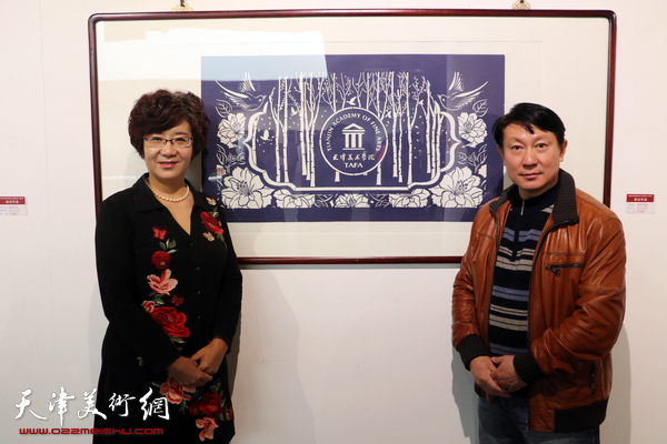 天津美术学院副院长郭振山与学员吕爱茹在结业仪式现场。