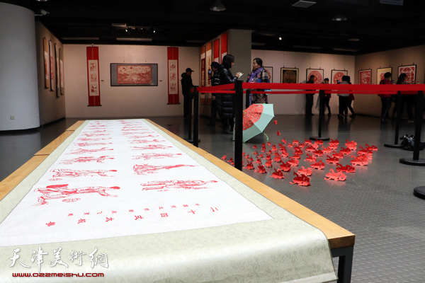 天津美术学院第三期剪纸艺术普及培训班结业展现场。