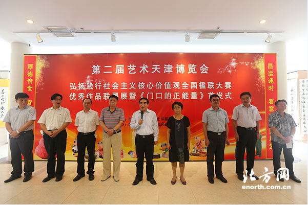 近日,集有365副楹联佳作的《门口的正能量——弘扬社会主义核心价值观全国楹联大赛优秀作品集》,在天津赠送给社会各界。同日,天津在水上公园内的今晚人文艺术院推出精品联墨展,展示国内各地书法名家精心书写获奖的佳作名联。市委常委、市委宣传部部长成其圣,老同志李润兰在首发式上向社会各界代表赠送《门口的正能量》一书,并参观了联墨展。