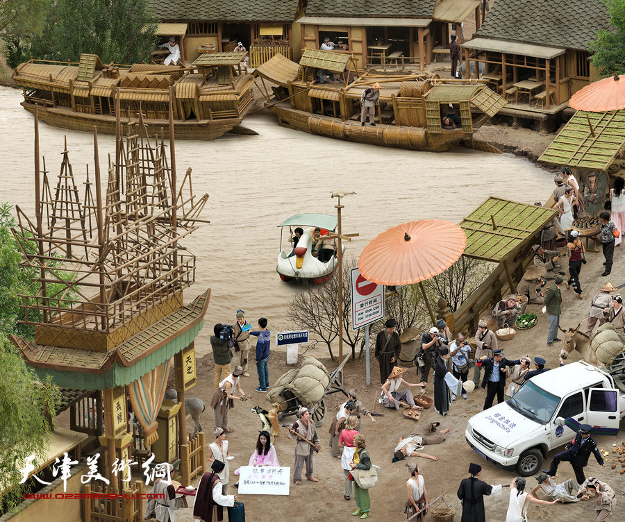 《新清明上河图》拼接的社会景观,从人物形态、风物景色到叙事主题,揭示了一个疯狂时代的全景画面,也暴露了一个畸形社会的病变肌理。艺术家的创造动机非常明显,他试图让人们看到自身的真实生活以及整个时代的种种弊病,而不是表面浮光掠影地影射现实。诚然,艺术无法直接解决任何问题,但它可以以一种独特的方式呈现问题,促进社会整体的思考和进步。毫无疑问,从宋人张择端笔下的《清明上河图》到今戴翔的《新清明上河图》,这两幅巨作聚合了两个不同时代的社会全景,给人们带来的不光是艺术的审美感受,而是生活的思考和历史的启示。
