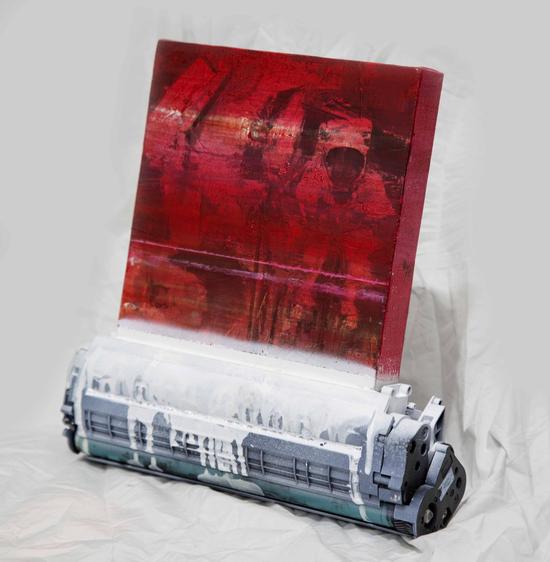 李鹏鹏:我出生在鞍山,一个地道的重工业城市,主要以生产钢铁为主。小的时候最喜欢的事是看火车,因此我对机械有比较强烈的情感。我想很多北方人都会有相同的情节,但是我的作品并不是在探讨工业问题,工业符号只是在提示某种时代背景抑或是对某一群体的隐喻,它们会与东西方的神话符号交织在一起,在冲突与矛盾中探讨当代生活中的种种问题。