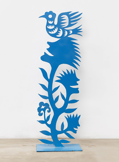 不同于任戎以往的钢板切割后的原始的金黄锈蚀系列,此次展览作品切割成形后,再进行细致的除锈、打磨、喷漆,因此这批作品有着雨后彩虹般的绚丽颜色,同时这批作品在造型上也突破了以往常规的竖长造型,尺寸高低不一,更加简练,线条流畅灵动,更富有动态表现。展览现场,起伏不平的黄沙将会铺满整个白盒子艺术馆一楼展厅,艺术家任戎的60多件最新作品将会高低错落的从起伏的荒芜沙漠中如雨后春笋般拔地而起,它们造型不一,颜色各异,犹如神秘花园的“天然景观”。每件作品都如同一株株“生命之树”,表现出强大的生命力,让它们扎根于黄沙之中。