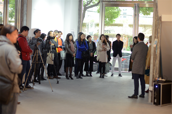 展览于下午三点半准时开幕,盈艺术负责人王厚淼、艺术顾问于向溟、策展人付晓东出席开幕式,艺术家夏晶心,陈陈陈,以及艺术家侯俊明助理陈思伶女士等多位嘉宾受邀来到开幕现场,和现场嘉宾进行互动交流。
