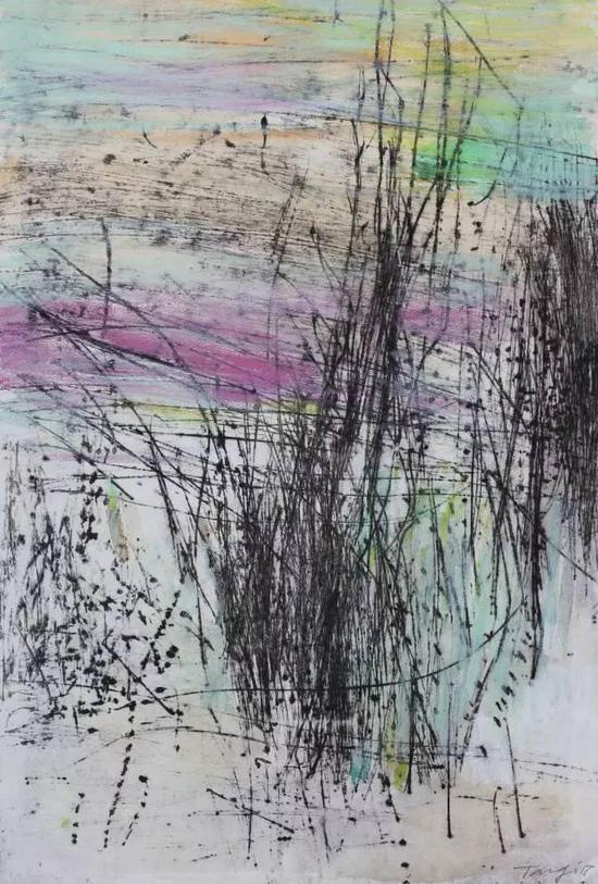 在一个奢谈观念、轻言绘画的时代,从内省回到观看,从描摹回到表现,如果没有对生命为何而存在的深沉思考和“远游”归来的文化寻根的使命,是不可想象的。为了更好地理解他的风格,我们大致可以把他放到一个叫做“表现主义”概念的盒子里,但是他决没有任何的刻意想要表现什么,却时时准备把自己“归零”,从而让自己在面对自然、面对生命的那一刻,欣喜若狂地发觉到文明与原始生长在一起的冲突与演变,以及由于自觉而升腾出来的敏感、焦灼与起伏的思绪,以一种特别的形式迸发出来,这样的审美过程衍生出的本能反应是原本应该放在盒子里的“主义”已经失去了它本来应该安放的境域。